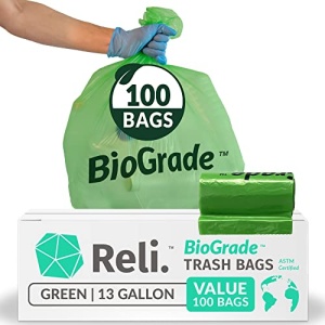 Reli. Biodegradable 13 Gallon Trash Bags | 100 Count | ASTM D6954 | Green | Eco-Friendly | Oxobiodegradable Under Certain Conditions (See Product Description)