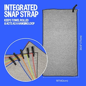 - ULTRA COMPACT, LIGHTWEIGHT, STAY CLEAN WITH HANGING LOOP: With an integrated snap strap closure that doubles as a hanging loop over the door, your backpack, or bottle. the large thin towel rolls up into a packable travel-friendly size. Perfect for anyone who travels light.