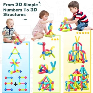- 【Preschool STEM Montessori Toys】 Build many things with magnetic balls and rods, from 2D numbers and letters to 3D animals and vehicles. A classic and simple STEM toy for kids, combine tactile exploration with magnetic play. The top choice of many schools and parents for STEM education tools in 2022.