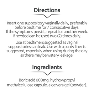 - DIRECTIONS – Insert one suppository vaginally daily, preferably before bedtime for 7 consecutive days. If the symptoms persist, repeat for another week. Can be used two (2) times daily if needed.