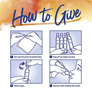 - Simply squeeze the small, pre-measured liquid dose into the child’s mouth.