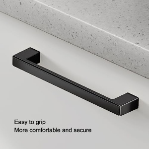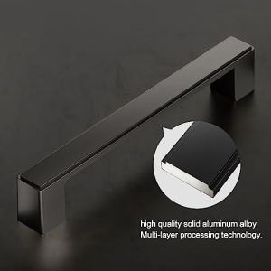 - Sleek and durable: these matte black square cabinet handles pulls are the perfect addition to elevate the look of your cabinets. Constructed from high-grade aluminum and meticulously finished with a multi-layer lacquer process, they offer both style and durability.