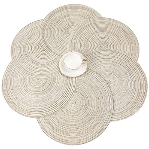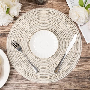 SHACOS Round Placemats Set of 6 Braided Circle Place Mat Washable 15 inch Table Mats for Kitchen Dining Table Mixed Color (Ivory, 6)