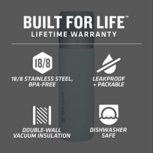Details: The STANLEY Quick Flip Go water bottle is designed to fit in most cup holders so it can ride along on your daily commute. The double-wall insulation keeps your favorite beverage cold for up to 12 hours, iced for up to 40 hours, or 8 hours hot. Unlike normal mugs, this is manufactured using 18/8 stainless steel, meaning it can take a beating. Everything is made with BPA-free material so your drink stays safe to consume. The trigger action lid makes this travel bottle spill-proof and easy for one-handed use. The lid is designed with a push-button, which opens the mouthpiece on top. You can throw this in your work bag without worrying. This bottle is made with a wide mouth tumbler opening that makes washing by hand a breeze. All components are also dishwasher safe to make clean-up easy for working men and women. ‘Built for life’.