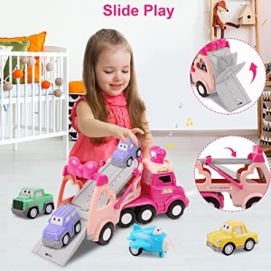 Toys for 1 2 3 Year Old Girl,5 in 1 Toddler Girl Toys,Carrier Truck Car Toys for 3 4 5 6 Year Old Toddler Girl with Music & Light,Pink Car Toys for 1 2 3 4 Year Old Girl,Toys for Girls Birthday Gifts…