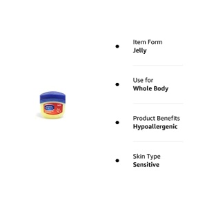Details: Vaseline Petroleum Jelly Vitamin E, made with triple-purified jelly, is a rich, conditioning petroleum jelly that keeps your skin soft and restored. It boasts a gentle formulation that contains Vitamin E and is gentle on your skin, hypoallergenic and non-comedogenic (will not block pores).